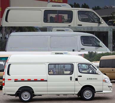 廈門金龍面包冷藏車標準配置:超白實色漆,高頂,正副駕駛椅三點式安全帶,前地毯乘客艙座椅三點式安全帶,10款前圍大面板,收放機,踏步式后保險杠+尾門內開啟,前暖風,后金旅商標2座,3M反光標示,普通白玻璃,盲窗(左右和尾門五塊),新款儀表臺,間歇式前刮水器,冷藏車專用前空調,封閉中隔板,前霧燈。