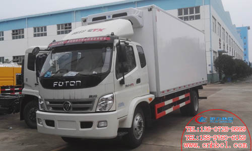 十二、福田奧鈴7.6米冷藏車,整車型號(hào):BJ5159XLC-F1,準(zhǔn)乘人數(shù)3人,康明斯ISF3.8s5168發(fā)動(dòng)機(jī),功率125kw,170馬力,2200排半前翻駕駛室、6擋箱、9.00R20鋼絲胎、斷氣剎、巡航、空調(diào)、中控鎖+電動(dòng)車窗+遙控、北斗雙模車載終端、MP3、ABS、動(dòng)力轉(zhuǎn)向,5600軸距,總質(zhì)量14995kg,整備質(zhì)量6805kg,額定載質(zhì)量7995kg,整車尺寸:9995×2510×3860(mm),廂體內(nèi)尺寸:7600×2300×2300(mm),黃牌,【加裝液壓尾板時(shí)貨箱長(zhǎng)度為7200】