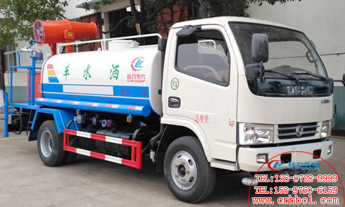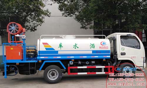 整車配置參數(shù):東風(fēng)多利卡底盤,朝柴102馬力或玉柴115馬力國五發(fā)動(dòng)機(jī),軸距3308mm,5立方灑水罐,罐體5MM厚,前沖后灑,帶后操作平臺(tái),帶高壓水槍,揚(yáng)程28米,帶自吸功能,消防接口。選裝配置水平射程25-45米風(fēng)送式噴霧機(jī)。