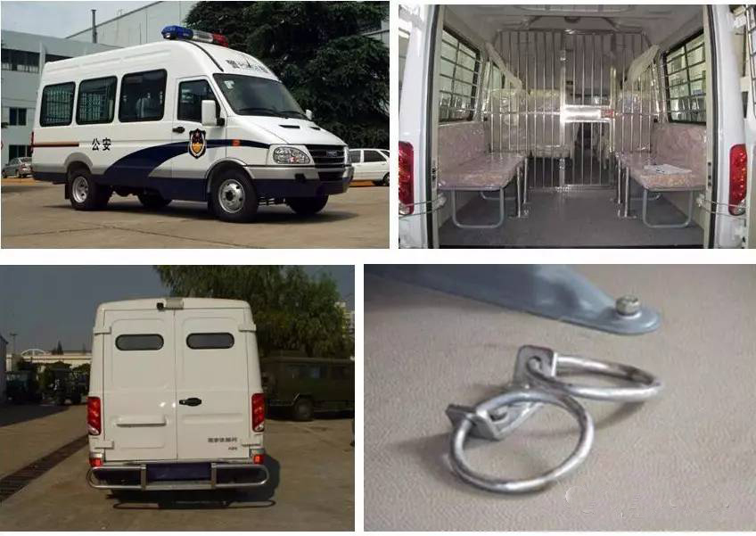 基本配置:車(chē)身警標(biāo)、警用標(biāo)識(shí)、警燈警報(bào)器、乘員座椅、戒具環(huán)、不銹鋼囚籠,附加長(zhǎng)排座椅、飲水機(jī)等。