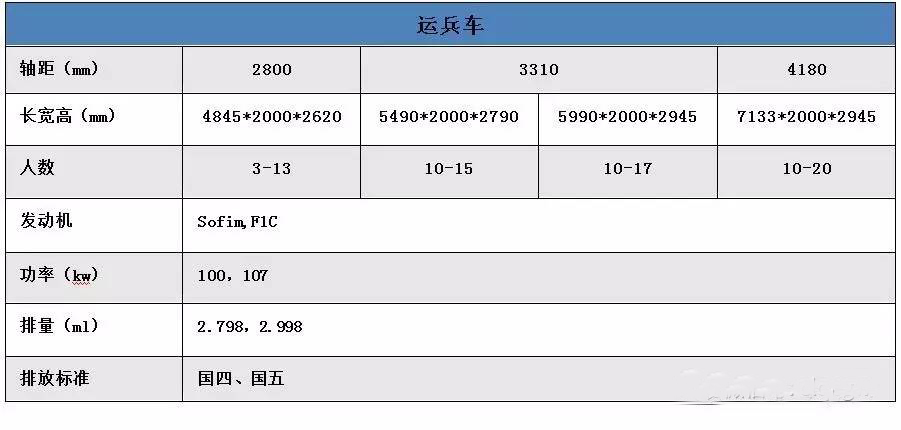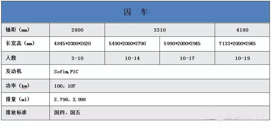 專(zhuān)用車(chē)型:囚車(chē)、指揮車(chē)、運(yùn)兵車(chē)等
