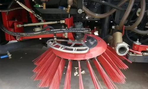 3)側(cè)掃刷系統(tǒng)接地壓力采用彈簧調(diào)節(jié)方式,工作時可根據(jù)路面狀況隨時調(diào)整掃刷接地壓力,減少掃刷磨損;