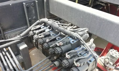 5)液壓系統(tǒng)中液壓閥采用進口電磁閥組,排列整齊,便于維護,液壓馬達采用進口品牌產(chǎn)品,整車液壓系統(tǒng)運行可靠,動作靈敏有效,運動元件無爬行現(xiàn)象;