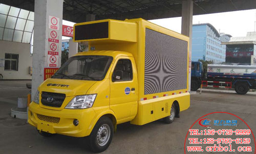 北汽昌河LED廣告宣傳車整車型號:CLW5030XXCC5型宣傳車 ,底盤型號:CH1035AQ24,國五LED廣告宣傳車整車外形尺寸:5220X1720X2710(mm),總質量:3335kg,額定質量:0(Kg) ,整備質量:3205(Kg) ,軸數: 2 ,軸距: 3190 mm, 燃料種類: 汽油 ,駕駛室乘人數: 2 人,輪胎數: 4 個。