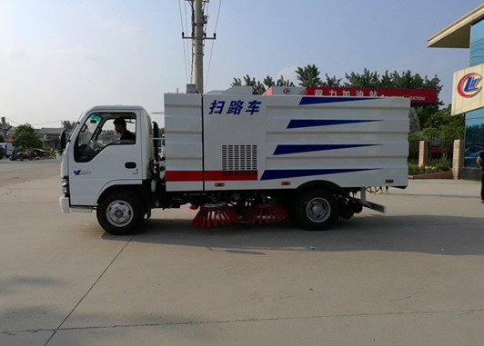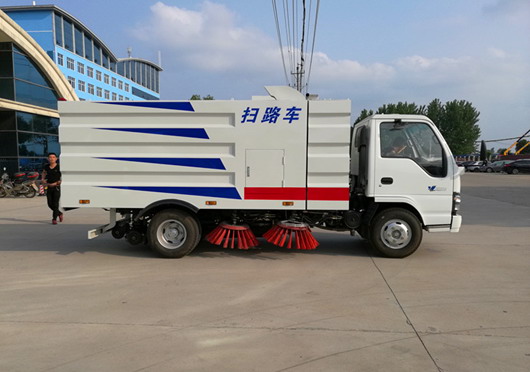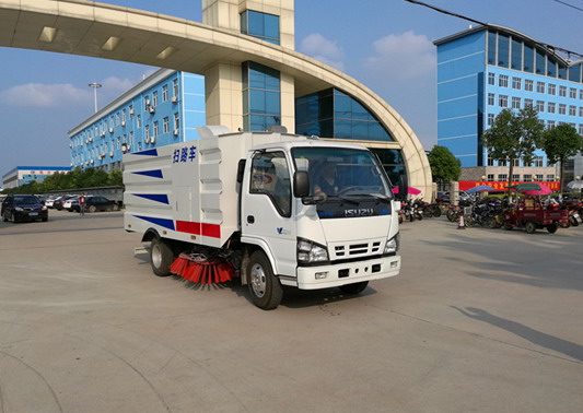 上裝標配:帶4個掃盤、江鈴五十鈴副發動機、和啟馬達、西門子控制開關、臺灣電磁閥組、無級變速自動離合器、免維護離心式自動風機、不銹鋼垃圾箱、尾部LED箭頭指示燈、手動泵應急系統、垃圾舉升自卸功能。