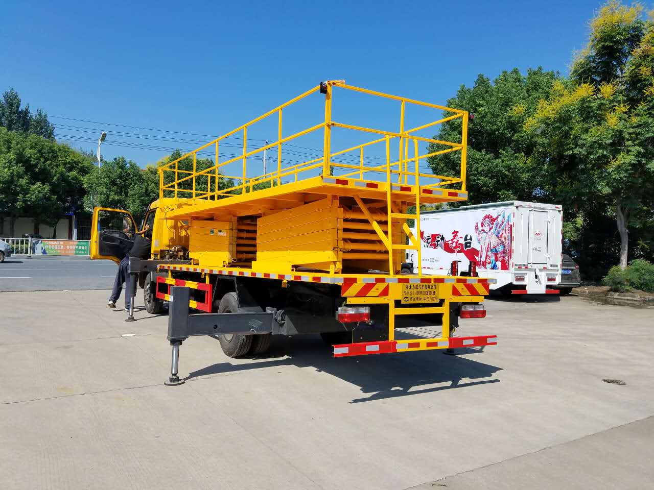 高空作業平臺平臺尺寸長6米可擴展放置8米左右長度廣告牌,寬2米,工作高度10米,升降載重量1噸,全液壓系統驅動液壓平臺工作,平臺上加裝一套上操作裝置,可以上下操作平臺升降.三至四個工人,一臺車輕松搞定.