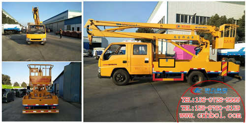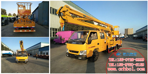 高空作業車是用來運送工作人員和使用器材到達指定現場,進行作業的專用汽車。高空作業車廣泛用于有點通信、市政建設、消防救護、建筑裝飾、高空攝影以及造船、石油、化工、航空等行業。它具有機動靈活,轉移迅速,覆蓋面廣,便于接近、到達作業地點,能迅速投入工作等優點。湖南某核武器公司訂購國五江鈴雙排座12米高空作業車(如圖)