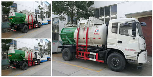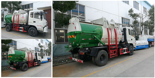 東風D913餐廚垃圾車底盤配置參考:東風D913駕駛室,國五康機170馬力發動機,6檔變速箱,軸距:3950mm,前橋3.6噸,后橋8噸,9.00-20輪胎, 這款國五餐廚垃圾車上裝配置參考:餐廚垃圾車容積:7.5方,罐體采用5mm優質Q345錳板制作,圓形罐體,罐體前后封頭采用圓弧蝶形封頭,罐體尾端及罐體后封頭外加25~30mm厚法蘭,罐體與后封頭上部采用鉸鏈連接,后封頭可利用液壓油缸打開卸料;罐體右側前部裝有掛桶提升機構裝卸桶裝垃圾,掛桶提升機前側裝有圓形液位計;罐體后部兩側安裝液壓油缸實現罐體舉升自卸,后蓋為液壓鎖緊。