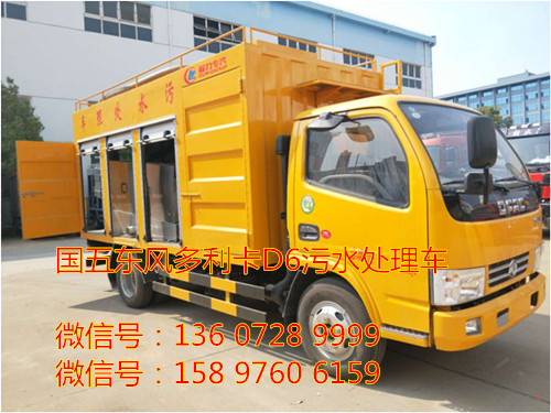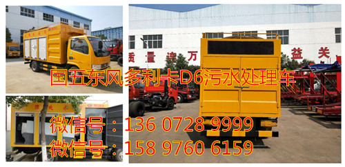 國五東風多利卡D6污水處理車整車型號:CLW5040TWC5型污水處理車,底盤型號:EQ1041SJ3BDF,國五污水處理車整車外形尺寸:5995, 5487X1990X2950(mm),總質量:4495(Kg),整備質量:4365(Kg)。