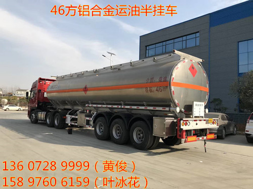 46方鋁合金油罐半掛車底架配置為高強度鋼副大梁,13噸的富華軸,16噸的剎車片,28噸單動支腿,12條1200的成山真空胎,其他廠家標配,附件全鋁合金,提供整車證、罐檢報告。歡迎來電咨詢,咨詢電話:136 0728 9999(黃俊),158 9760 6159(葉冰花)