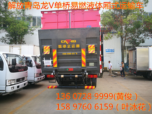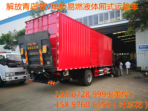 國五解放青島龍V單橋易燃液體廂式運輸車圖片