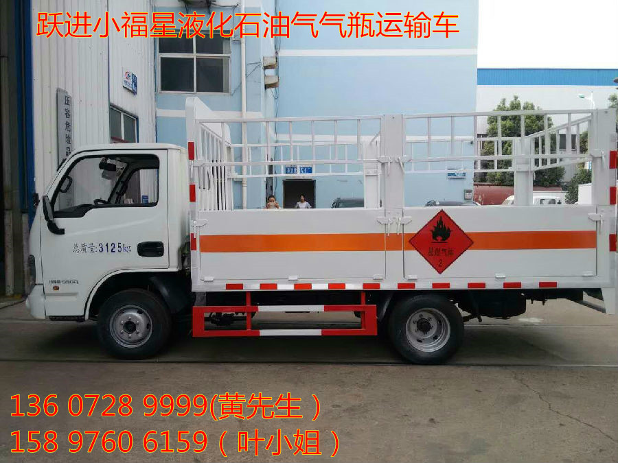 躍進(jìn)小福星液化石油氣氣瓶運(yùn)輸車該車適用于運(yùn)輸危險(xiǎn)品為危險(xiǎn)貨物運(yùn)輸車,隨底盤選裝駕駛室。主要用于運(yùn)輸具有獨(dú)立容器(瓶)包裝的液化石油氣,丁烷, 乙炔, 乙烷, 丙烷, 丁烯, 打火機(jī)或打火機(jī)加油器, 二氧化碳, 壓縮氧(氮, 空氣, 氦, 氬, 氖), 類項(xiàng)號(hào):2.1。