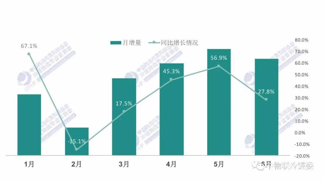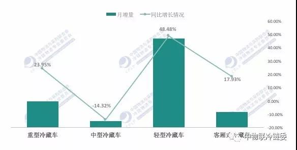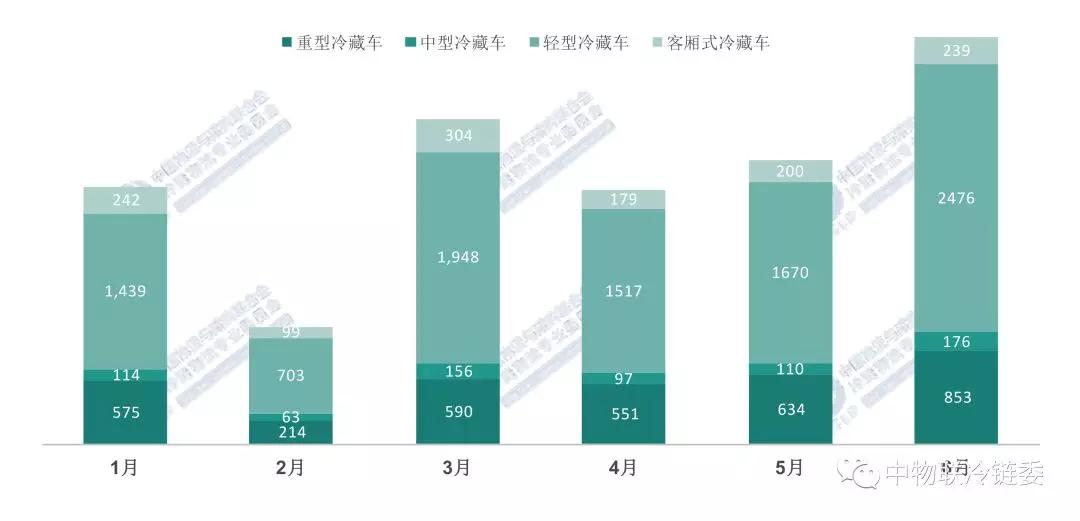 上半年,我國(guó)冷藏車市場(chǎng)增量十分可觀,冷藏車增長(zhǎng)量約為18200臺(tái),同比增長(zhǎng)26.6%。其中,輕型冷藏車增長(zhǎng)約11640臺(tái),重型冷藏車增長(zhǎng)約3750臺(tái)(含半掛車?yán)洳剀嚰s200臺(tái)),中型冷藏車約810臺(tái),客廂式冷藏車約2000臺(tái)。增長(zhǎng)量從3月份開(kāi)始攀升,5月份達(dá)到峰值。
