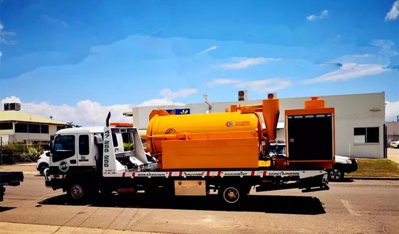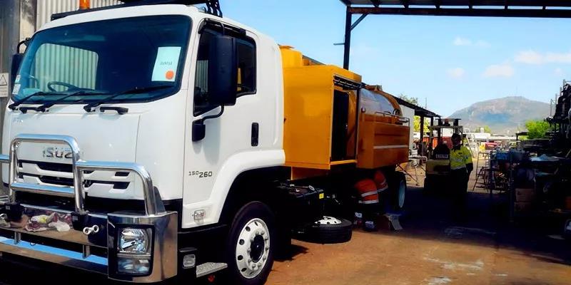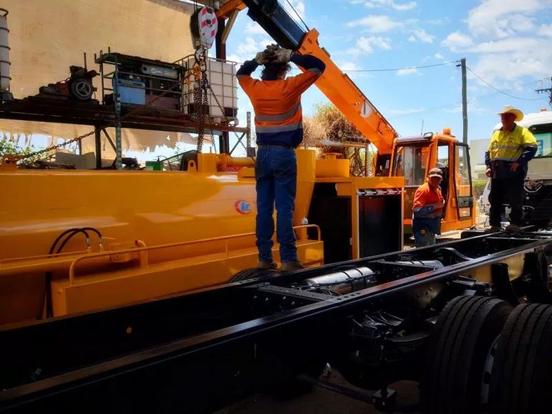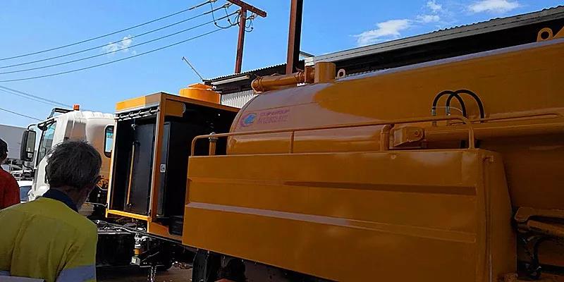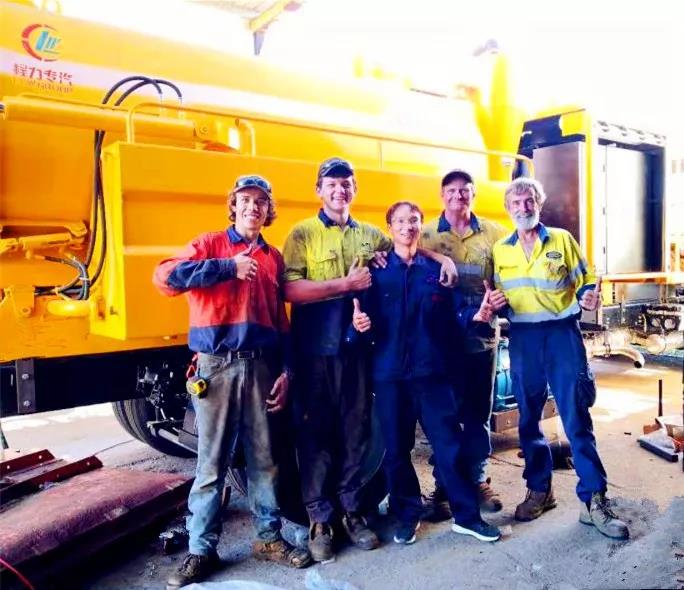 程力環保車專業廠生產的高端智能聯合清洗吸污車在澳大利亞湯斯維爾市調試裝備。