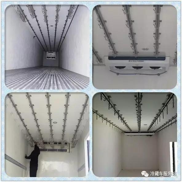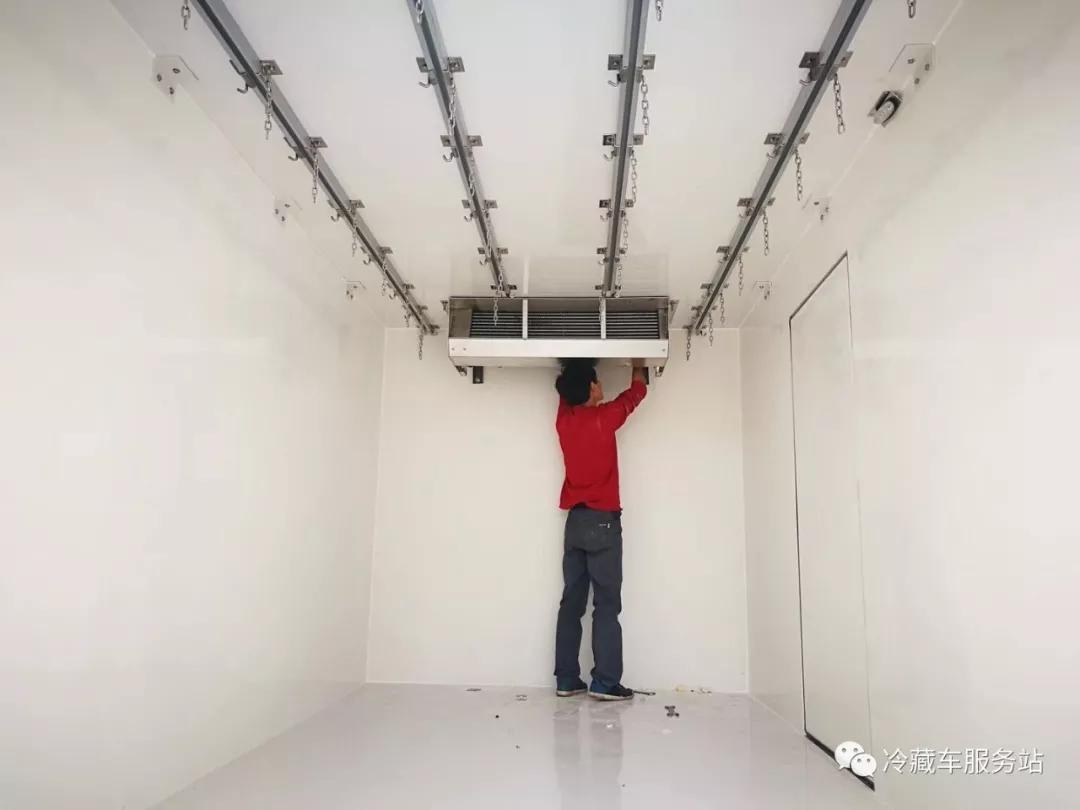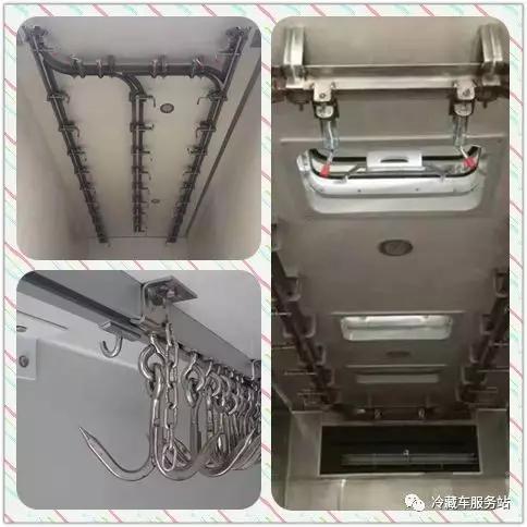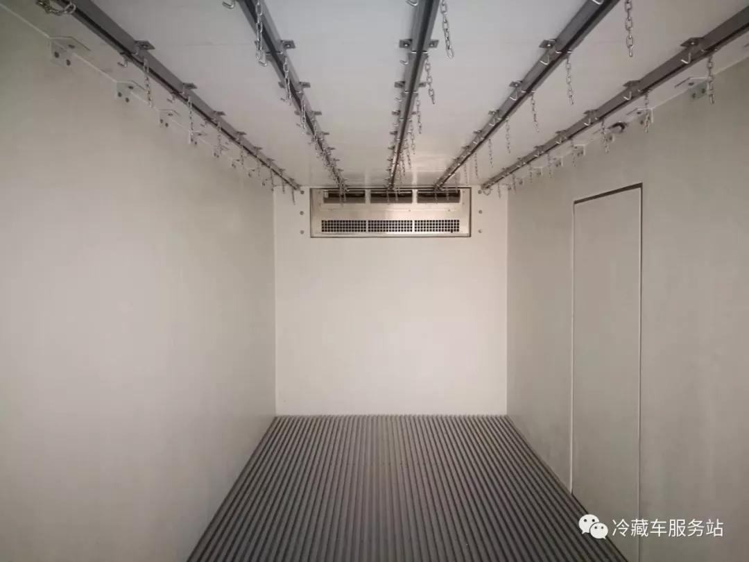 3、肉掛車對于制冷機組的要求,有除霜功能,除霜時候會升溫為什么? 因為各種肉類受冷壓縮產生水分,制冷機組使箱體內部溫度將至冰點,出風口溫度更低最后結霜,嚴重堵塞出風口,影響制冷。因此,為保證貨物的運輸溫度,肉掛冷藏車必須使用帶有除霜功能的制冷機組,通過電加熱絲加熱,將出風口的結霜融化,化霜過程中,制冷機組蒸發器停止工作,除霜的時間根據不同品牌制冷機組長短不一,我們常用的制冷機組的除霜時間約15分鐘(可調),因此,在整個除霜過程中箱體內部會升溫。