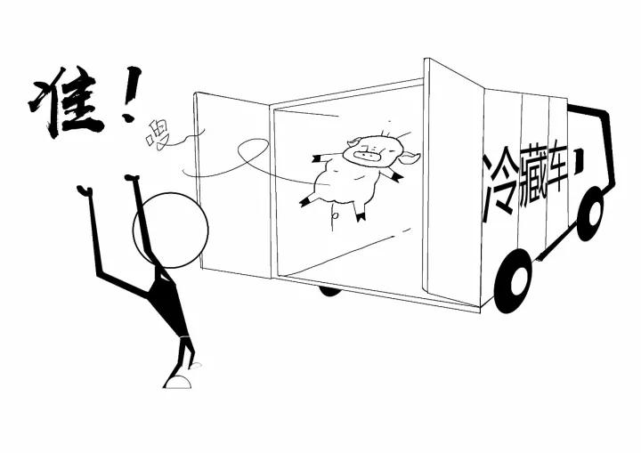 在車廂里經過急速冷凍的豬肉都已經
