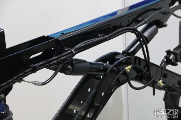 而在駕駛室后側(cè)的懸架模塊上,還有兩個橫向的減震器,它們可以在車輛轉(zhuǎn)彎時減少駕駛室的側(cè)傾,讓駕駛室內(nèi)更加平穩(wěn)。