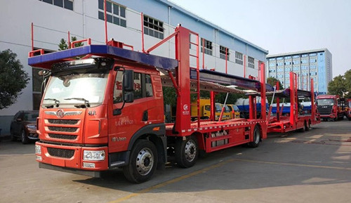分為骨架式、半封閉式、全封閉式骨架式,即側片為立柱組成,無側蒙板,無前片、后門和頂片。自重輕、成本低、油耗小,但運輸貨物時不方便,且轎車易受損;全封閉式轎運車,即側片、前片均采用蒙板封閉,帶后門,頂片為蓬桿蓬布式。自重大,成本高,油耗大,但能保護轎車,且能運輸其它貨物;半封閉式轎運車,即無頂片,其特點介于兩者之間。