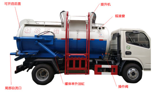 東風小多利卡4噸餐廚垃圾車常規標配: 罐體采用4mm優質Q345錳板制作,圓形罐體,罐體前后封頭采用圓弧蝶形封頭,罐體尾端及罐體后封頭外加25~30mm厚法蘭,罐體與后封頭上部采用鉸鏈連接,后封頭可利用液壓油缸打開卸料;罐體右側前部裝有掛桶提升機構裝卸桶裝垃圾,掛桶提升機前側裝有圓形液位計;罐體后部兩側安裝液壓油缸實現罐體舉升自卸。后蓋采用液壓鎖緊,室外手動液壓操作。