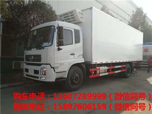 東風天錦7.8米冷藏車上裝配置:冷藏廂體內部有效尺寸:長7.4米×寬2.44米×高2.4米,廂體蒙皮采用內外玻璃鋼,隨客戶選擇內置槽鋼焊接骨架或者玻璃纖維超輕高強度骨架,填充8cm聚氨酯保溫層,不銹鋼包角,不銹鋼門框,不銹鋼門鎖件,防滑花紋鋁底板,配后雙開門,車廂右側可以加開側門,-5度或者-18度非獨立制冷機組,可選裝合資獨立制冷機組或美國原裝進口獨立制冷機組。選裝底板通風槽,選裝導軌肉鉤。