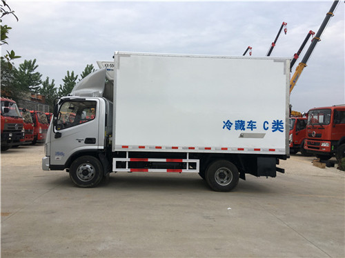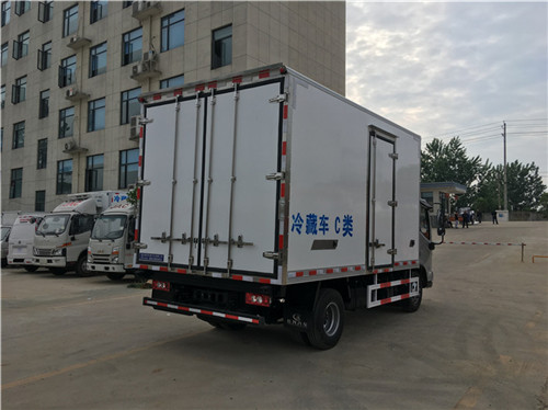福田歐馬可S3冷藏車,整車型號:BJ5048XLC-FE,底盤型號:BJ1048V9JEA-FE,整車尺寸:5995×2500×3430(mm),箱體內尺寸:4080×2350×2200(mm)尺寸保外就內,箱體內外玻璃鋼,8cm保溫板,底板防滑花紋鋁板,安裝鄭州凱雪KX550制冷機組。