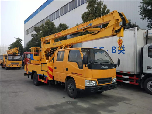 江鈴順達12米高空作業車專用性能: 360度液壓全回轉、三節折疊臂、單液壓舉升缸、帶雙向平衡閥,帶電控操作舉升臂,四肢液壓油缸可調試支腿帶雙向液壓鎖(支腿操作為手動操作、可單獨控制)上下二套操作臺,帶1噸吊鉤,最大作業高度12米,做大 耐用、操作方便可靠、獨特的全回轉三節臂液壓操控系統設計使工作人員操作更平穩、能更安全的將工作人員送到作業位置,進行維修、安裝、清洗、攝像、造船、化工、電力搶修、剪枝、更換路燈及其他工程高空作業搶修!