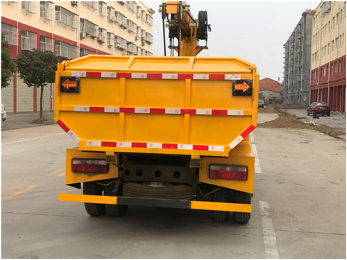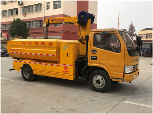 3、自卸干凈量大:清淤車車廂容積5方,U形狀呈斗式,底部設計雙缸三節臂液壓頂,使用壽命,舉升角度大,自卸時可以卸垃圾徹底。