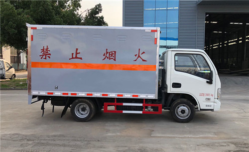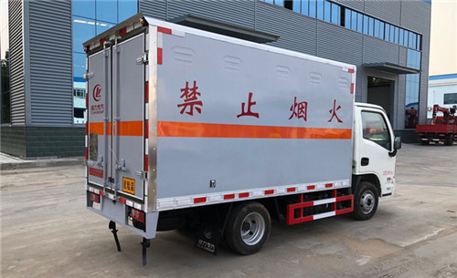 躍進(jìn)3米3雜項(xiàng)危險品運(yùn)輸車整車尺寸(mm):5180×1830×2580,箱體尺寸(mm):3350×1700×1700 ,箱體采用拼裝結(jié)構(gòu),外厚度為1.5毫米厚度武鋼冷軋鋼板,中鋼骨架,內(nèi)壁為鋁合金板,箱體厚度為5公分,箱體外表上方采用模壓成型帶防水通風(fēng)功能百葉窗,固定貨物的臥式拉環(huán)鉚接在鋼骨架上,牢固可靠。門內(nèi)安裝高精度限位裝置和駕駛室內(nèi)部報警器相連接,杜絕箱門未鎖緊情況。箱體外部箱門打開處安裝防自關(guān)門的限位風(fēng)勾,箱體外觀涂裝灰色油漆,駕駛室內(nèi)部安裝安全報警器連接后部箱體,對箱體內(nèi)部實(shí)施安全監(jiān)控。