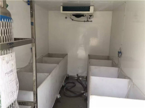 3、該車前部設(shè)計(jì)有合為一體的工具箱和液態(tài)壓縮氧罐(一罐壓縮氧氣相當(dāng)于40瓶普通的氧氣瓶供氧量),在運(yùn)輸中不用擔(dān)心氧氣不足,行駛途中不用加冰,不用換水,駕駛室能自動(dòng)調(diào)節(jié)水溫,讓溫度控制在10-18度,魚在這個(gè)溫度中是靜止不動(dòng)的,大大提高魚的成活率。