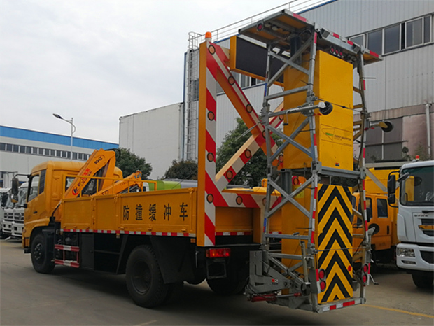 東風天錦防撞緩沖車功能介紹:防撞緩沖車主要用于高速公路施工,隧道施工,公路施工等工程時,最大限度的降低了施工車輛、養護人員和事故處理的交警的安全風險問題。該車專用裝置為導向架和防撞緩沖墊等組成,可在臨時性車道封閉的路段給養路工人及設備提供全面的被動安裝防護:通過防撞包的變形均勻逐漸的緩消碰撞的動能,對施工人員及設備進行有效的保護,同時最大限度地保護撞擊車輛內人員的安全。