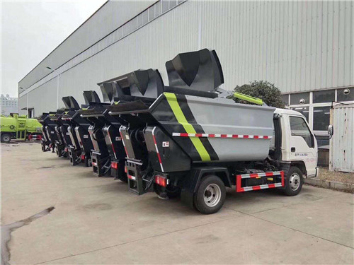 2、該車通過箱體后部的提升機構掛桶裝載垃圾,可兼容提升120升,240升兩種標準垃圾桶。