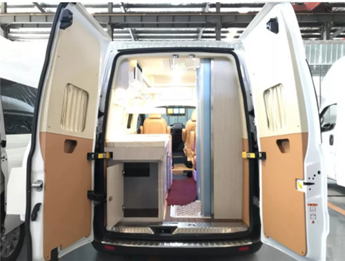 房車后部尾門寬大,采用對(duì)開(kāi)設(shè)計(jì),在天氣比較好的情況下增加了車內(nèi)的采光和通風(fēng)條件,給體驗(yàn)者更多休閑樂(lè)趣。