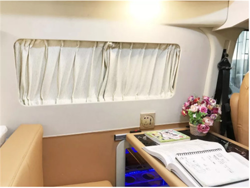 整車在乘客艙部分采用原廠玻璃窗,有效擴(kuò)展乘客的旅乘視野,還在乘客艙左右各開(kāi)有玻璃推窗,切實(shí)提高乘客艙內(nèi)空氣流動(dòng)性。
