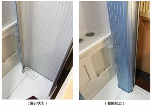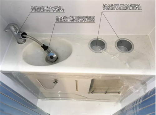 床鋪對(duì)面是房車衛(wèi)生間,為節(jié)省有限空間,本款房車采用開(kāi)放式衛(wèi)生間,衛(wèi)生間內(nèi)設(shè)有衛(wèi)生間洗手池總成,配有抽拉式兩用花灑可淋浴、洗手、洗頭,集多種洗浴功能于一體,還有便攜式馬桶、梳妝鏡、鏡前燈、帶防水蓋插座、毛巾架等家用衛(wèi)浴設(shè)施,同時(shí)配有電熱水器和燃油加熱器,燃油式加熱系統(tǒng)擁有即熱式熱水器和室內(nèi)暖風(fēng)的功能,短短幾分鐘,可為洗浴提供充足的熱水,就可以洗上舒服的熱水澡。為保證洗浴和如廁隱私,可沿滑道拉出兩邊的鋁制卷簾門形成獨(dú)立的洗浴空間,還能起到防水功能,而且整個(gè)衛(wèi)生間都作了防水處理,平時(shí)可推進(jìn)兩邊的鋁制卷簾門收入內(nèi)滑圈以收卷形式節(jié)省空間。