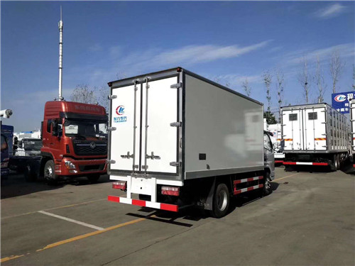 國六東風多利卡D6廂長4.1米冷藏車箱體采用內外全是玻璃鋼,中間進口聚氨酯發泡膠為保溫材料,厚度是8厘米,可選擇各種進口-15度——-20度冷藏車機組,保溫性能達到國家A級標準。