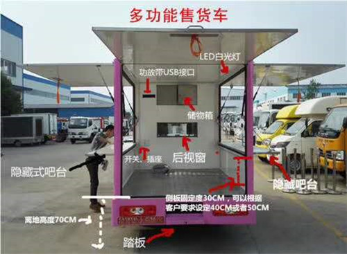 國六躍進小福星流動售貨車上裝配置參考:外形尺寸:5160*1800*2750mm,貨廂尺寸:3400*1710*1800mm,功放音響,開關插座,后視窗,儲物箱,照明設備,手動液壓單雙全/半展小飛翼(可選自動),可選內置清洗,餐廚設備,可選貨架。想了解更多國六躍進小福星流動售貨車價格,圖片,參數,可以來電咨詢13607289999/15897606159(微信同號)。