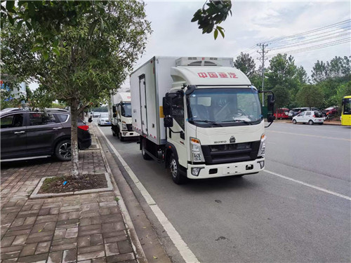 國六重汽濰柴130冷藏車,4.1米冷藏車上裝配置:箱體為內外玻璃鋼板,中間保溫材料為8cm聚氨酯保溫板,鋁花紋底板,箱體鋁合金型材包邊,包角,配雙開后門,單開側門,不銹鋼門框、鎖件、鉸鏈,其余標配。