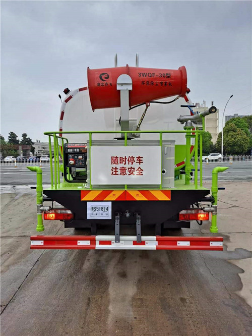 國六東風D9灑水車,14.6噸灑水車上裝配置: 罐體容積14.6方,罐體用4MM碳鋼板制作,罐內隔板具有防波作用,以減低汽車行駛時罐體液體的沖擊。整車帶一個專用灑水泵60/90(垂直最大吸程6米),灑水寬度14米,射程28米。多功能灑水車配備2個前沖(噴)(能將路面泥巴、塵土、垃圾沖干凈);2個后灑(能均勻地將水灑在路面,一次灑水寬度14米)、2個側噴(花灑)(能均勻地將路旁綠化帶澆灌)、帶1個后工作平臺,平臺上安裝1個綠化灑水高炮(灑水炮可全方位旋轉,可連續調成直沖狀、大雨、小雨、毛毛雨,霧狀可調節沖洗高大樹木),引水時間<5min,流量90m3/h。帶1個消防接頭,帶1個自流閥,1個過濾裝置、人性化爬梯及側防護欄,安裝灑水音樂喇叭。