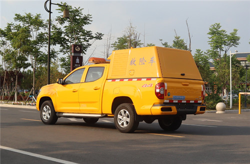 上汽大通500方皮卡排水車實用新型公開了一種消防氣防車,包括車體、駕駛室、艙體,其特征在于,艙體的前端為中隔板,該中隔板上設有推拉窗、液晶顯示屏、對講機,艙體內前部兩側設有折疊椅、中間設有折疊桌,該折疊桌上設有通信電臺,艙體左側折疊椅的右側設有器材骨架Ⅰ,該器材骨架Ⅰ設有盛放發電機的機艙和多個置物艙,艙體右側折疊椅的左側設有器材骨架Ⅱ,器材骨架Ⅱ后側配備滅火器,所述艙體內頂部設有消毒燈、滑動輸液支架、升降照明燈,在艙體的中間設有上車擔架,在車體左側后門上設有折疊擔架,所述車體的上端設有長排燈、外場照明燈、設備天線、通過玻璃鋼底座固定的閃燈。本實用新型的有益效果:結構布置科學合理,綜合性、一體化程度高。